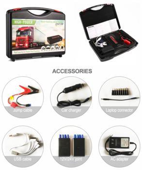 | Make for | Starting dead 12V/24V vehicle; Starting dead motorcycle, sleigh, yacht. Charging mobile phone, pad, MP5, laptop etc; SOS, working light,safety hammer, wireless charge, quick charge etc. |